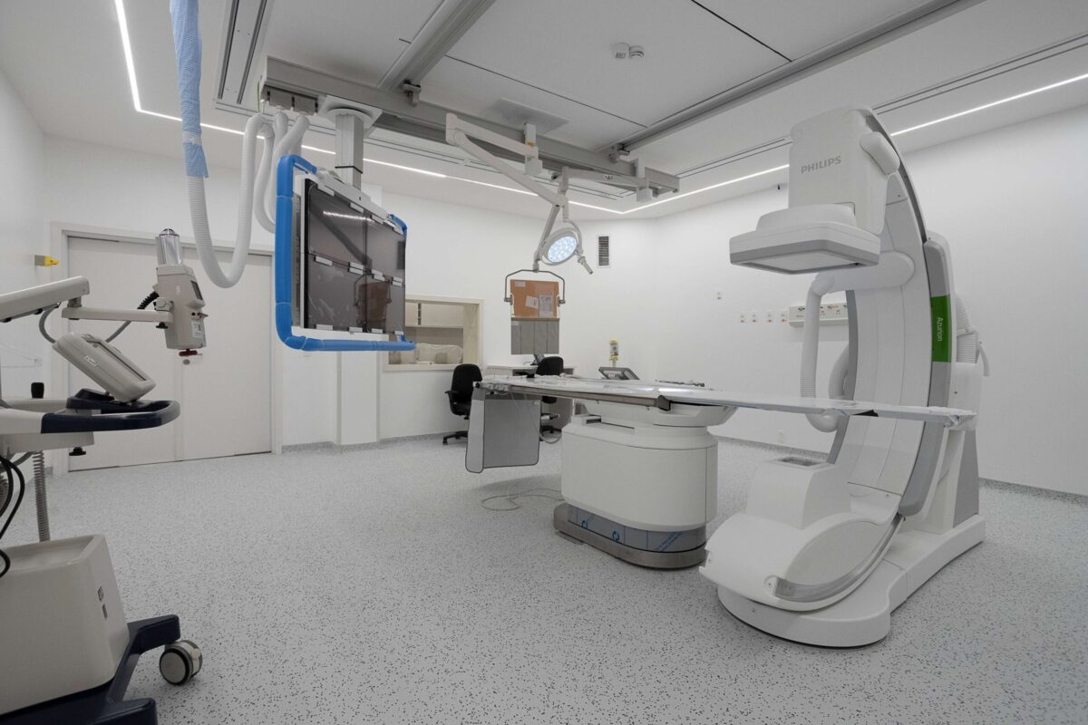Equipamento de hemodinâmica em operação.