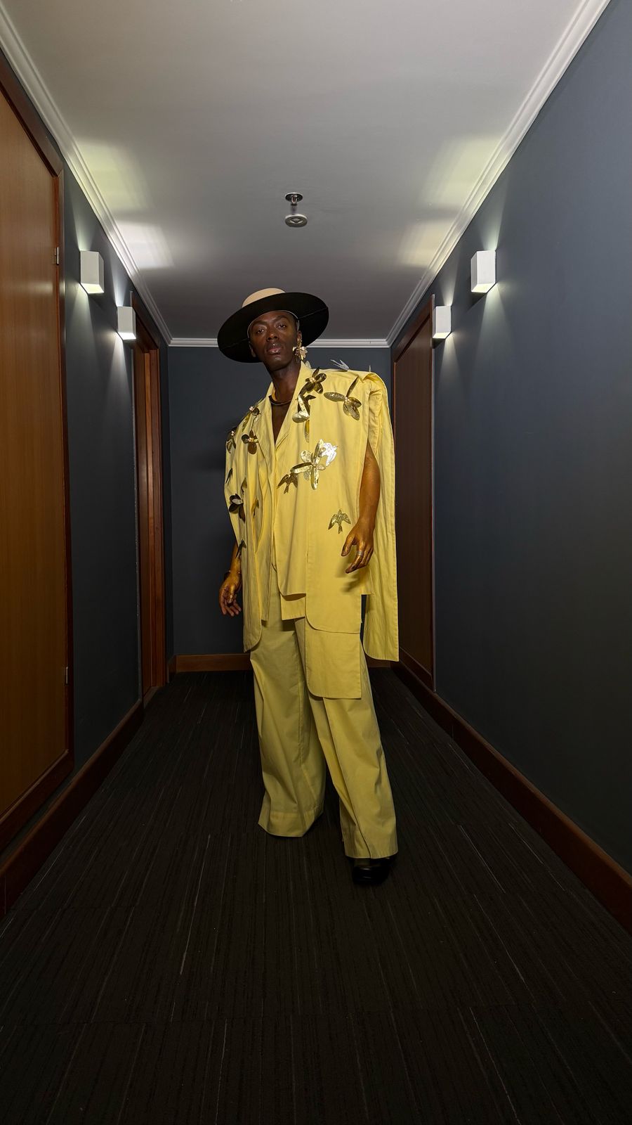 Inspirado no ícone Colman Domingo, o visual de Jota.pê também traz influências marcantes da era de Marvin Gaye e da sofisticação de Curtis Mayfield. Essa combinação de referências reforça não apenas o compromisso do artista com a inovação estética, mas também sua capacidade de traduzir a musicalidade e a história da moda em um único look arrebatador.